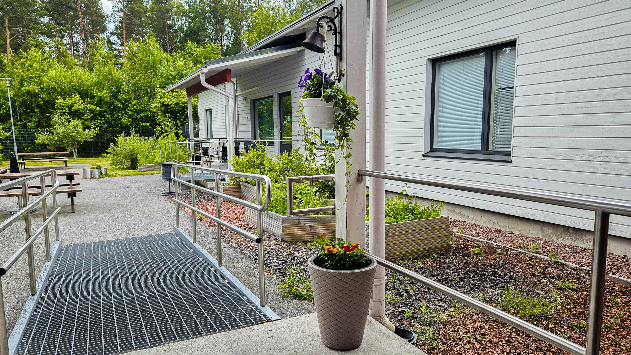Keskellä yksikköämme on isompi ruokailu- ja oleskelutila. Käytössä on myös yhteinen sauna, sekä takapihalla viihtyisä oleskelupiha. Kasvatamme pihalla hyötykasveja. Vietämme ulkona paljon aikaa esimerkiksi puutarhan hoidossa ja pihapelien parissa. Kaikki tilamme on suunniteltu esteettömiksi.